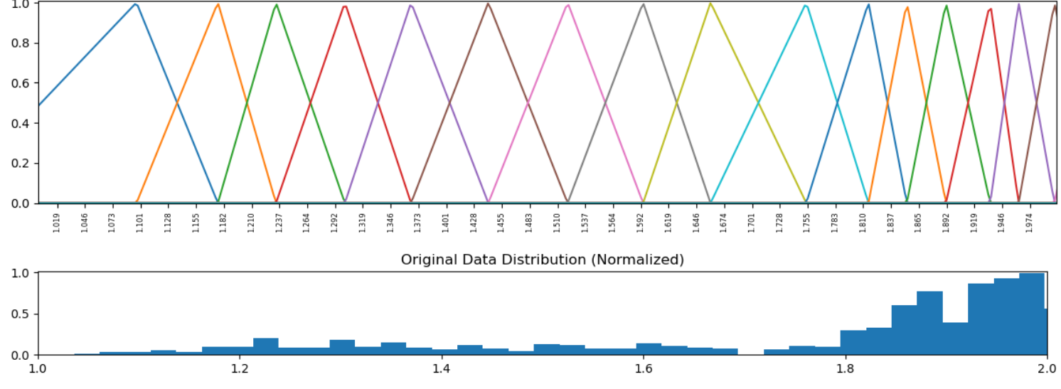 This implementation is largely derived from the C-Means Fuzzy Time Series Forecasting hybrid model introduced by Alyousifi, et. al. in their paper “A new hybrid fuzzy time series model with an application to predict PM10 concentration ”. C-Means Fuzzy or Fuzzy C-means is a clustering strategy that extends the traditional K-Means algorithm to accommodate fuzzy membership values. Unlike K-Means, where each data point belongs to only one cluster with a membership degree of 1, Fuzzy C-Means allows data points to belong to multiple clusters simultaneously with varying degrees of membership [8].