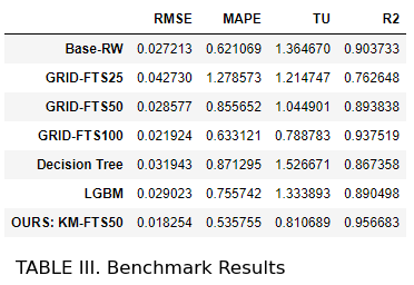 Of course, it is not all sunshine and rainbows. It’s important to note that while the model showed promising results in simulations, forecasting models typically do not perform as well in real-world scenarios. Machine learning models often struggle to consistently outperform stock indices over extended periods. The KM-FTS model, tailored specifically for the dataset (A17U.SI) and its particular range, while not utilizing stationary data as input, will likely fail to generalize well to other datasets or conditions. Future works can explore other models or transformations to generate fuzzy membership functions from stationary time series data.